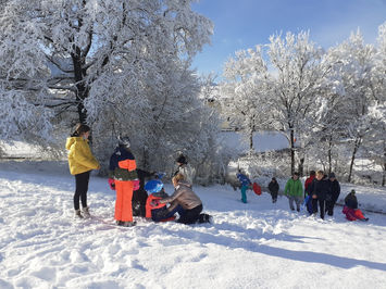 Aufgrund der großartigen Lage unserer Schule kamen alle Schüler*innen in den Genuss den ersten Schnee dieses Jahres in ihren Bewegung und Sport Stunden so richtig auszukosten. Diverse Bobs und Rutschteller wurden mit in die Schule gebracht und im Unterricht wurden dann viele flotte Abfahrten gemacht. Wir hoffen alle, dass dies nicht der letzte Schneefall war und wir noch ganz oft unseren tollen Rodelhügel benutzen können.
